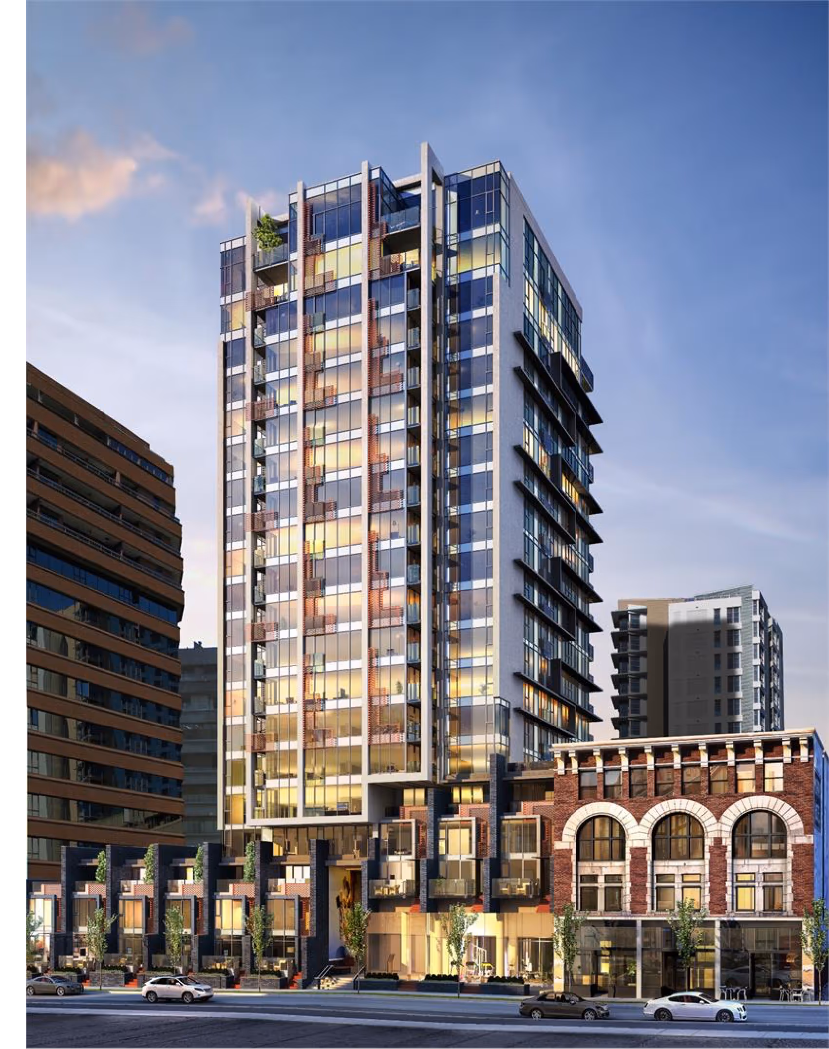 Located at the intersection of heritage and high design, Addition redefines downtown living by uniting a contemporary condominium tower with the historic Murray Hotel, one of Vancouver’s preserved SRO landmarks.