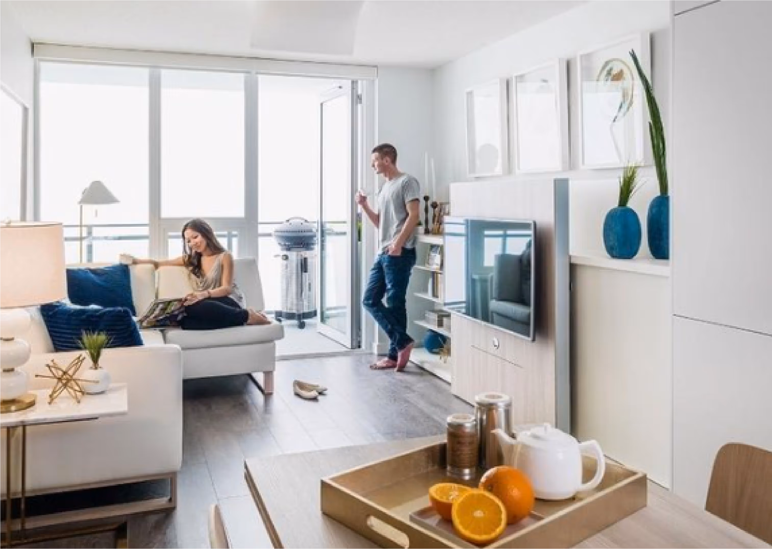 Amenities include a full-time concierge, fitness and yoga studios, and the Riversky Club, complete with fireside lounge, rooftop terrace, and panoramic water views. Together, these features transform everyday living into an elevated waterfront experience.